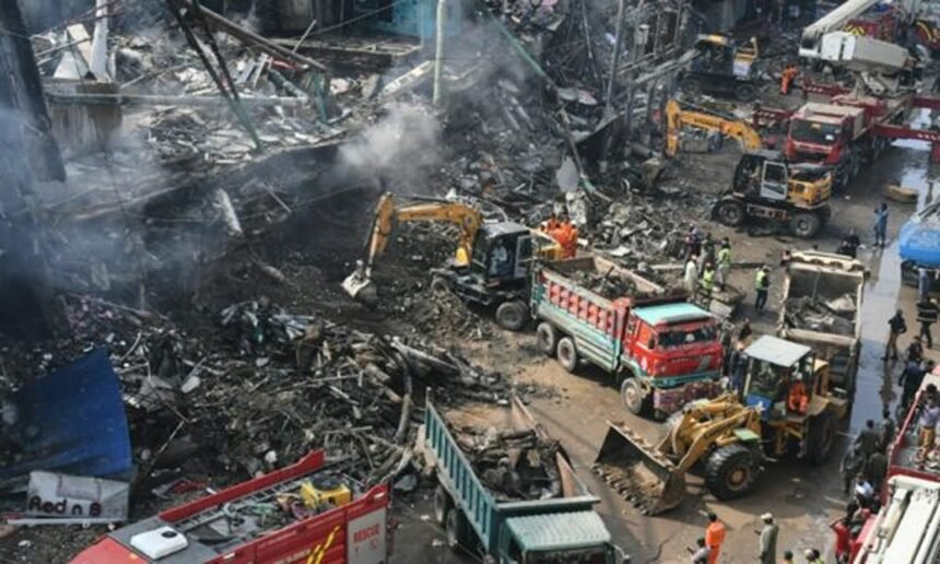 The fire, the largest the city has seen in over a decade, broke out late Saturday at Gul Plaza, a multi-story complex in Karachi’s historic center housing around 1,200 shops and covering an area larger than a football field. Flames raged for more than 24 hours before being largely brought under control.