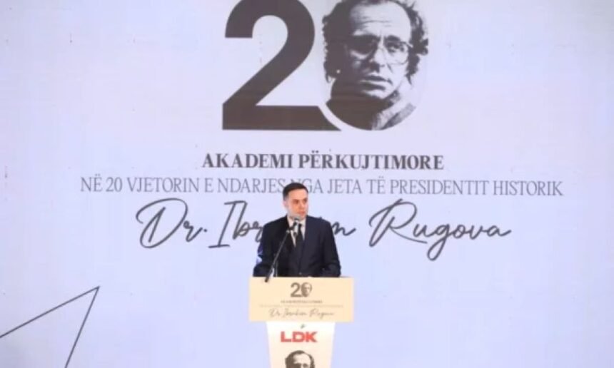 On the occasion of the 20th anniversary of the death of former President Ibrahim Rugova, the Democratic League of Kosovo (LDK) held a commemorative academy on Wednesday, where party leader Lumir Abdixhiku delivered a speech dedicated to Rugova’s life and political legacy.