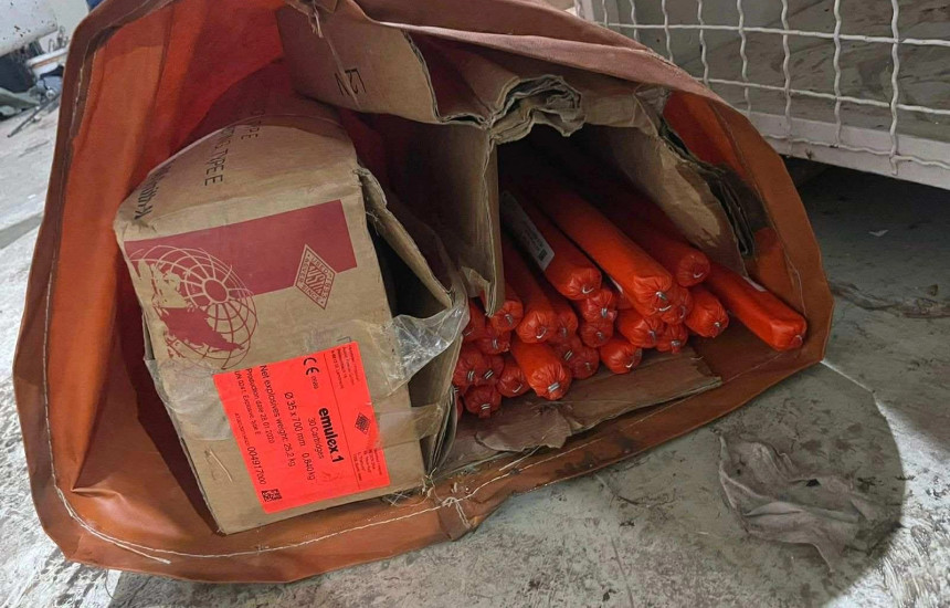 During questioning, the vehicle’s occupant claimed they were not carrying any goods requiring declaration. However, the inspection revealed undeclared and highly dangerous materials (explosives) packed in sacks and parcels—weighing around 300 kilograms—hidden in the vehicle’s luggage area and camouflaged with fishing equipment.