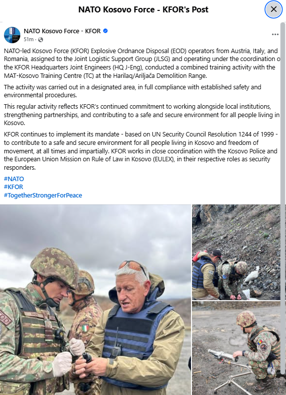 KFOR stated that the exercise was conducted in a designated area, in full compliance with established safety and environmental protection procedures.