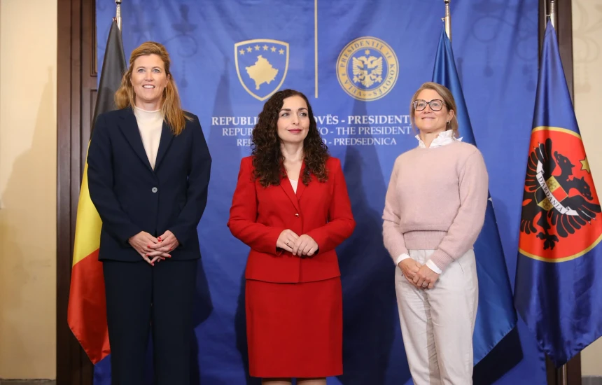 President Vjosa Osmani met on Tuesday with Belgian Minister of Justice Annelies Verlinden and Minister of Asylum, Migration and Social Integration Anneleen Van Bossuyt at the Presidential Office in Pristina. Media representatives were allowed to capture footage only at the beginning of the meeting.