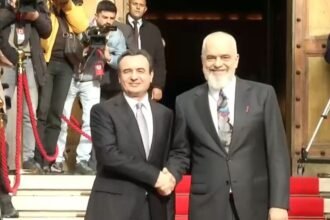 Rama Welcomes Kurti at the “Our Pathway to EU” Summit, Exchange Handshakes