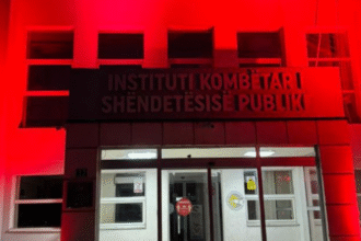 The National Institute of Public Health of Kosovo was illuminated in red…