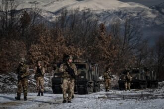 Italian soldiers from the Regional Command–West (RC-West) of the NATO-led KFOR mission…