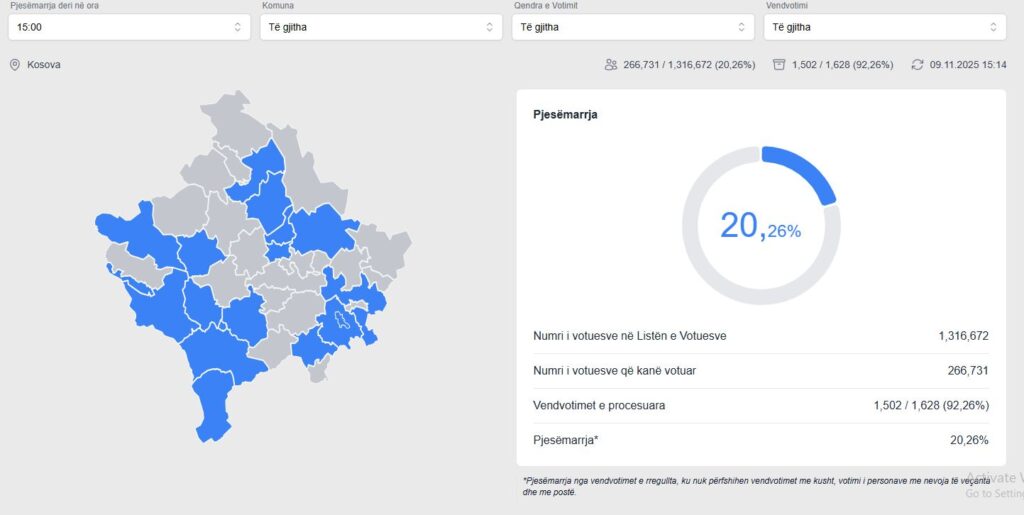 As of 15:14, 266,731 citizens have cast their votes, representing 20.26% of all eligible voters.