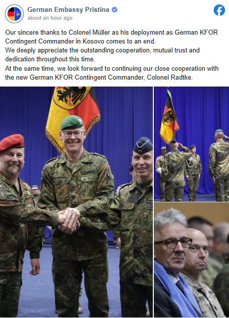The German Embassy also expressed its readiness to continue close cooperation with the new commander of the German KFOR contingent, Colonel Radtke.