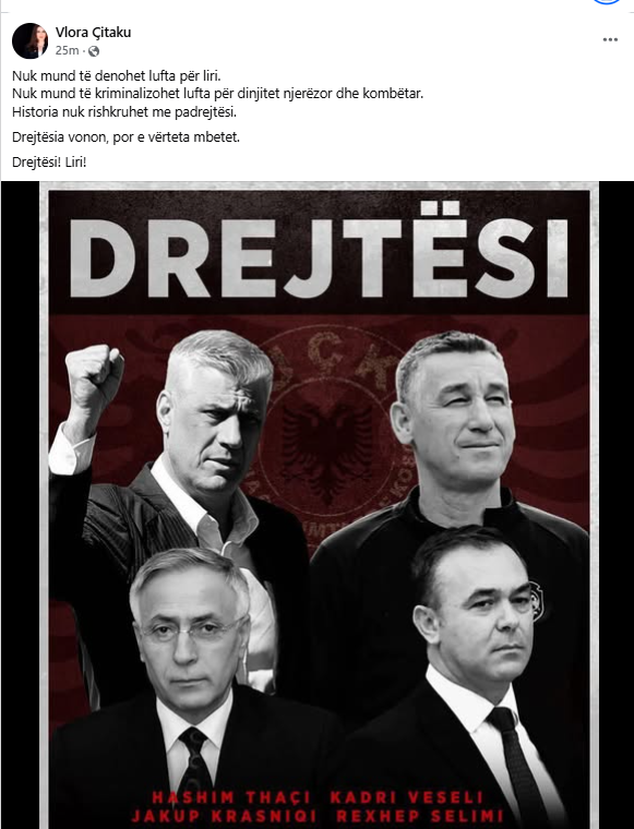 “The fight for human and national dignity cannot be criminalized. History cannot be rewritten with injustice. Justice may delay, but the truth remains. Justice! Freedom!” Çitaku wrote on Facebook.