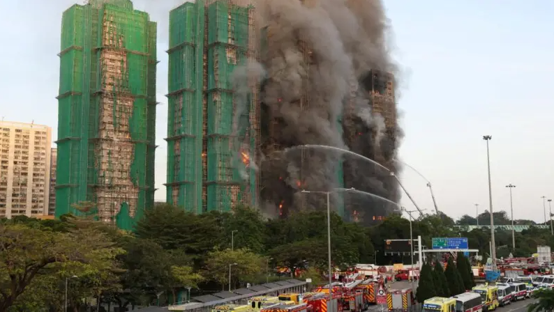 Thirteen people, including a firefighter, have been killed, and at least 15 others are in critical condition following a massive fire engulfing a residential complex in the Tai Po district of Hong Kong. Flames also consumed bamboo scaffolding across seven blocks, leaving many residents trapped inside.