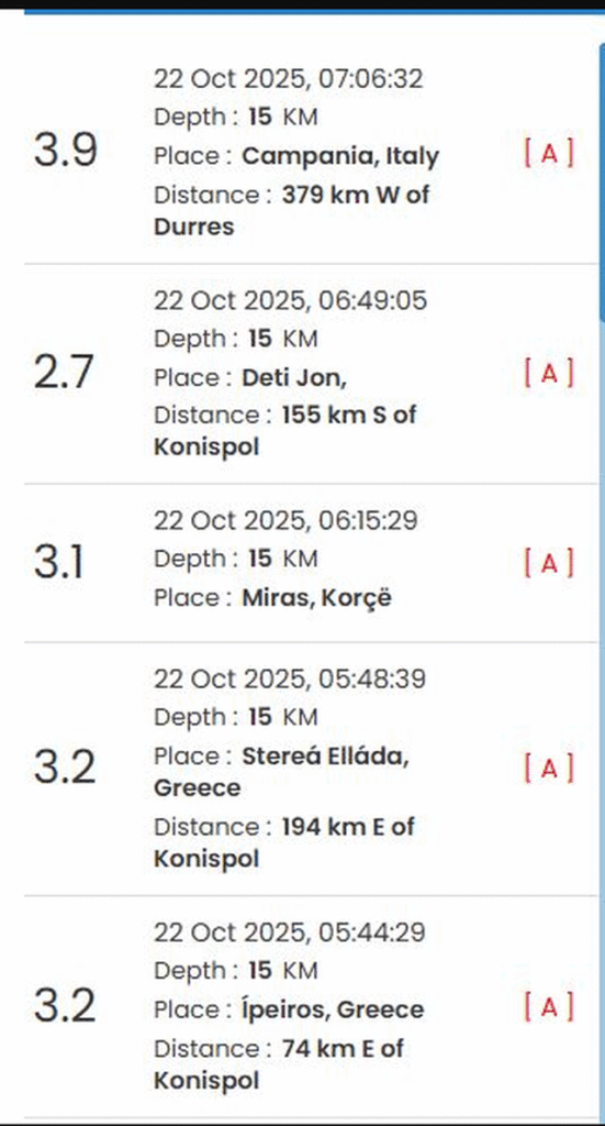 Earlier, two additional tremors were also recorded in Konispol, both with a magnitude of 3.2.