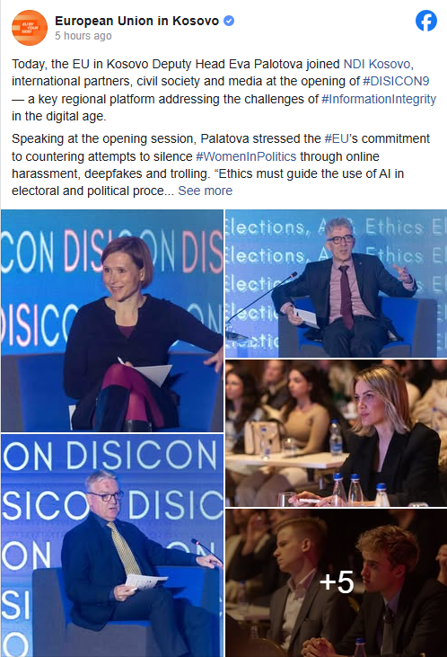 The Deputy Head of the European Union Office in Kosovo, Eva Palotova, joined representatives from NDI Kosovo, international partners, civil society, and the media today for the opening of the ninth edition of DISICON — the leading regional platform addressing information integrity in the digital era.