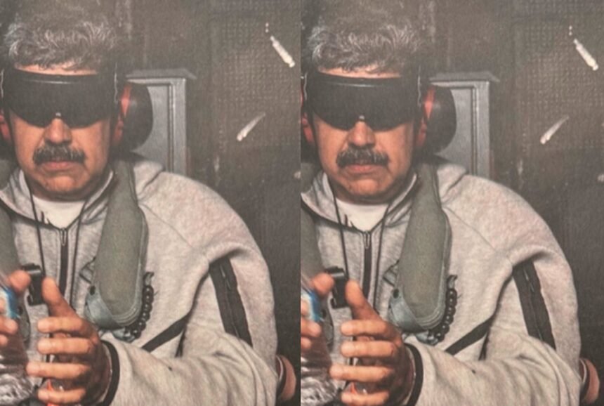 In the images, Maduro is seen with his hands tied and his eyes covered. The Venezuelan leader is accused of offenses related to drug trafficking and weapons.