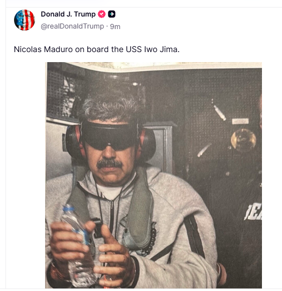 Trump shared images showing Maduro being transported to New York, where he is expected to face charges in a Manhattan court.