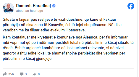 The leader of the Alliance for the Future of Kosovo (AAK), Ramush Haradinaj, reacted to the situation, calling for immediate action from institutions:
