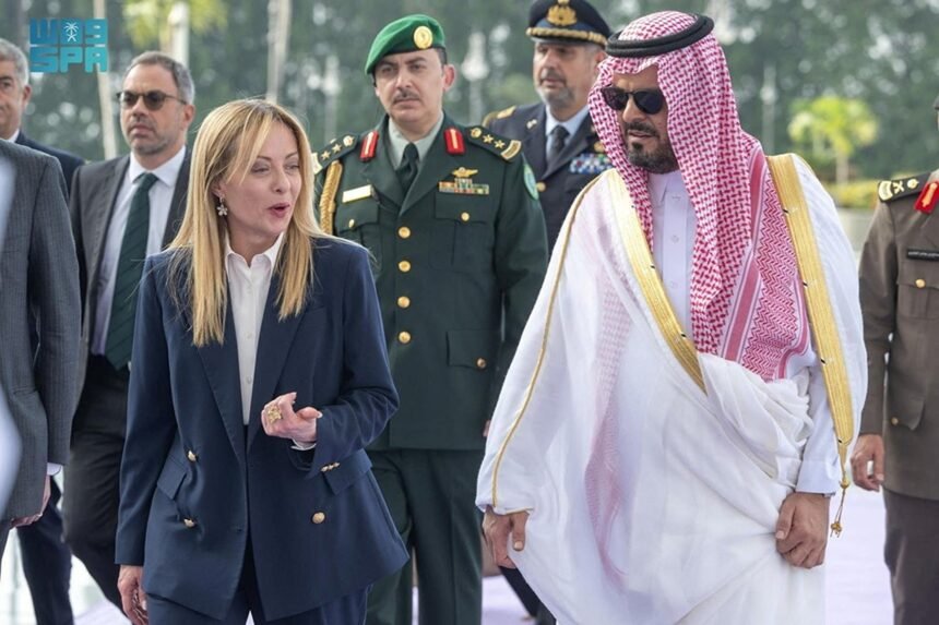 Italian Prime Minister Giorgia Meloni arrived yesterday afternoon in Jeddah and is set to stay for the next two days, meeting regional leaders in the Middle East, according to reports.