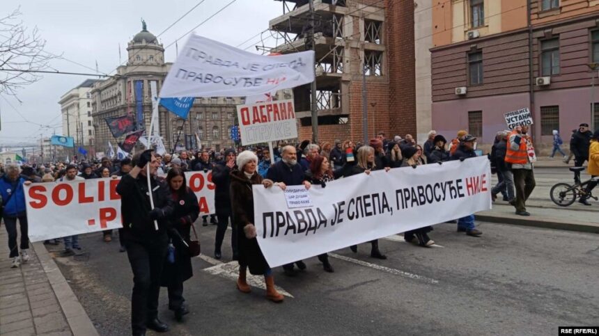 Judges, prosecutors, lawyers and citizens gathered in central Belgrade on Saturday for a protest titled “Marš za pravosuđe” (March for Justice), voicing opposition to recently adopted judicial laws that critics say threaten the independence of the judiciary and the autonomy of prosecutors.