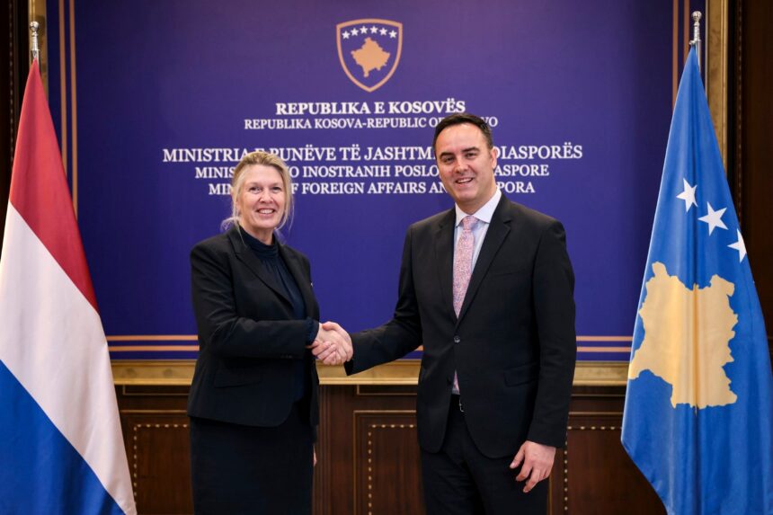 Kosovo’s Minister of Foreign Affairs and Diaspora, Glauk Konjufca, met with the Ambassador of the Kingdom of the Netherlands to Kosovo, Karin Boven, to discuss the advancement of bilateral relations and the alignment of positions on issues of mutual interest.