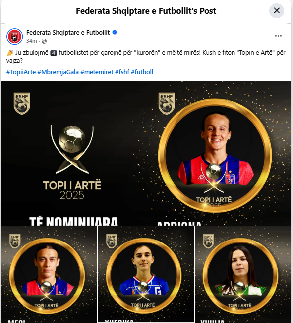 The Albanian Football Federation has announced the nominees for the “Golden Ball” award for 2025.