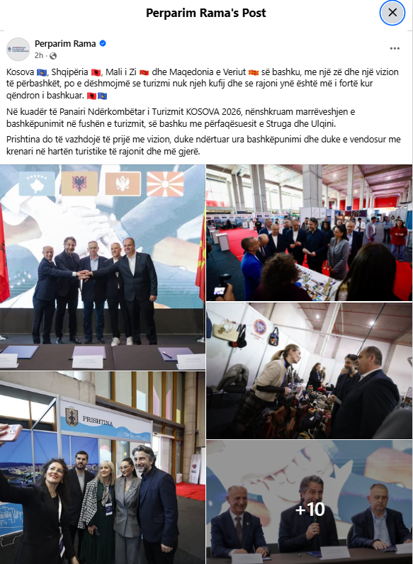 Rama said that Pristina will continue to lead with a vision of cooperation, building bridges between countries and strengthening the region’s presence on the international tourism map.