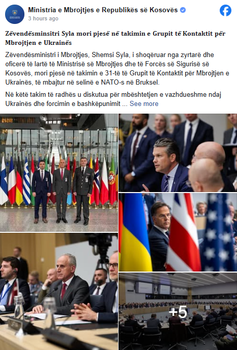 At the 31st meeting of the Ukraine Defense Contact Group, held in Brussels, Kosovo reaffirmed its commitment to stand with its allies and to support international efforts in maintaining peace, security, and democratic values.