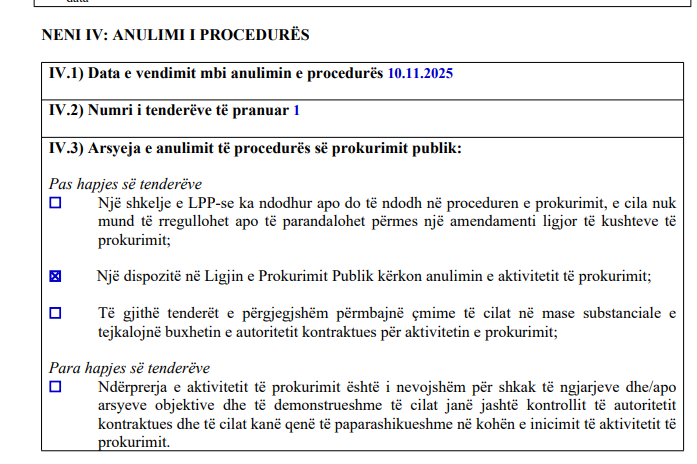 However, the tender was not finalized with a contract, as a provision in the Public Procurement Law required the cancellation of this process, reports IndeksOnline.