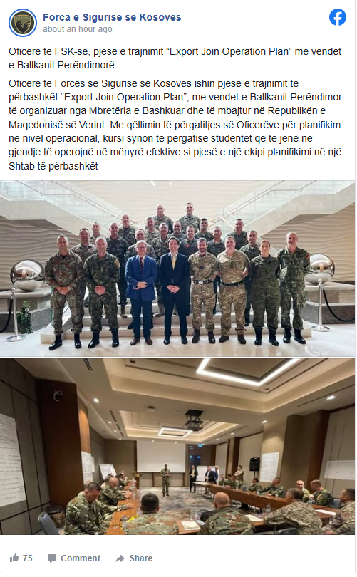 Officers of the Kosovo Security Force (FSK) participated in the joint training “Export Joint Operation Plan”, organized by the United Kingdom and held in the Republic of North Macedonia.