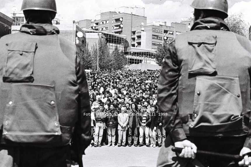 A photograph by Ridvan Slivova, photographer for Telegrafi, has brought renewed attention to the last student protest in Prishtina, held on April 30, 1998, near the technical faculties—one of the most significant moments of peaceful student resistance in Kosovo.