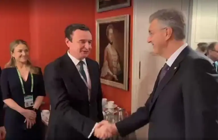 Plenković congratulated Kurti on his new mandate, and the two leaders exchanged formal greetings before entering a reserved hall for their bilateral discussions.