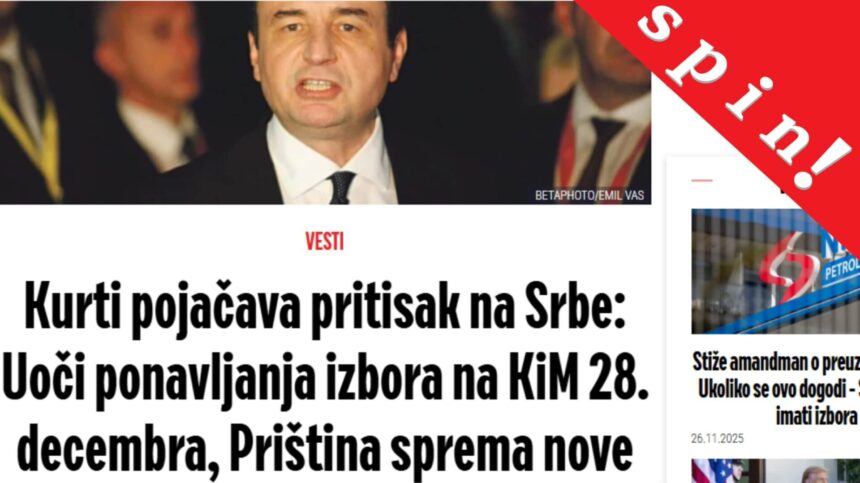 The article, published ahead of Kosovo’s fourth round of elections this year—early parliamentary elections set for 28 December—focuses on allegations that the government in Prishtina routinely “steps up pressure on Kosovo Serbs” during campaigns. These claims are attributed to unnamed “sources” and later to historian and analyst Srđan Graovac.