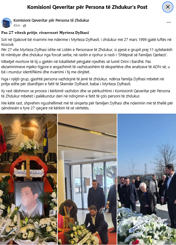 Today in Gjakova, Myrteza Dylhasi was reburied with honors, nearly 27 years after he disappeared on March 27, 1999, during the Kosovo War.