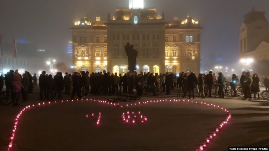 Residents of Novi Sad commemorated the 13th month since the collapse of the railway station canopy, which claimed the lives of 16 people, with candlelight vigils and a silent march.