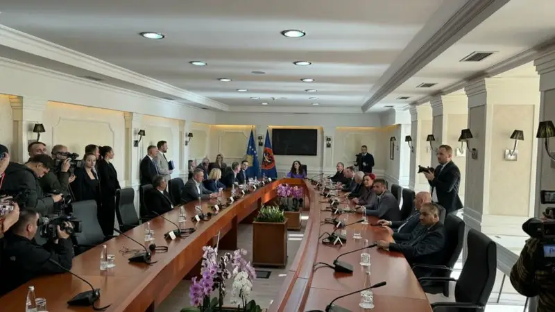 The meeting, which has now commenced, also includes Albin Kurti, leader of the Vetëvendosje (LVV) party. Although LVV won the most votes in the 9 February elections, it did not secure enough seats to form a new government.