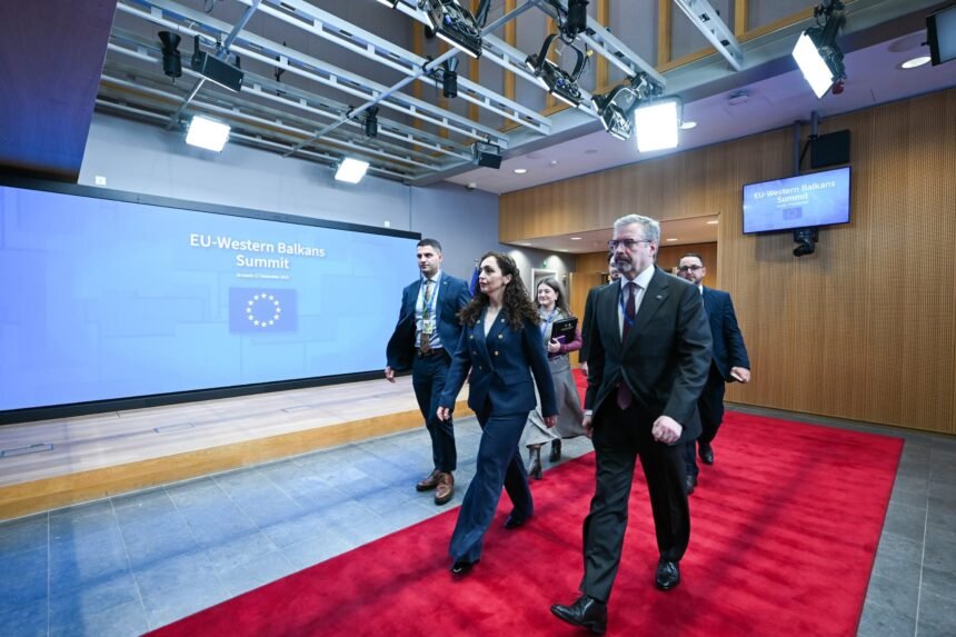 “We are again here as committed partners of the EU, as a state fully aligned with EU foreign and security policy, and as a country that has consistently shown progress and strong commitment to reforms, whether in the rule of law, the economy, or other areas. Unfortunately, these reforms have not yet translated into tangible progress in Kosovo’s European integration, as the process is very complex,” Osmani told the media before the EU–Western Balkans Summit.