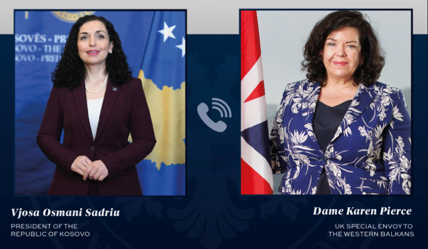 The President of Kosovo, Vjosa Osmani, announced that she held a phone conversation with Dame Karen Pierce, the UK’s Special Envoy for the Western Balkans.