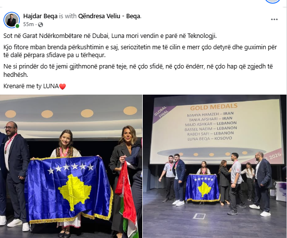 In a contest featuring participants from various countries around the world, Kosovo’s Luna Beqa secured first place in Technology, showcasing her talent and innovation on a global platform.