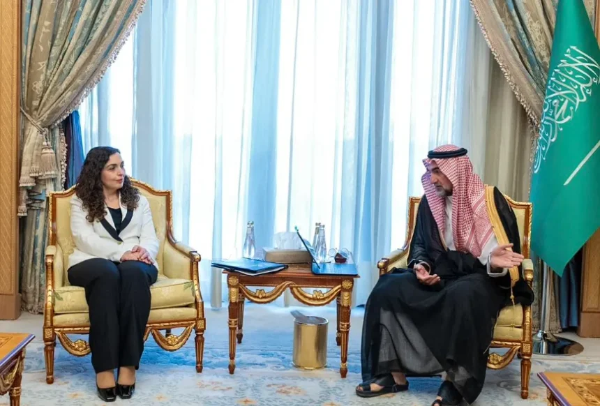 President of Kosovo, Vjosa Osmani, met with the Governor of Saudi Arabia’s Public Investment Fund (PIF) during her official visit to Riyadh, where discussions centered on strategic investments, development projects, and Kosovo’s participation in EXPO 2030.