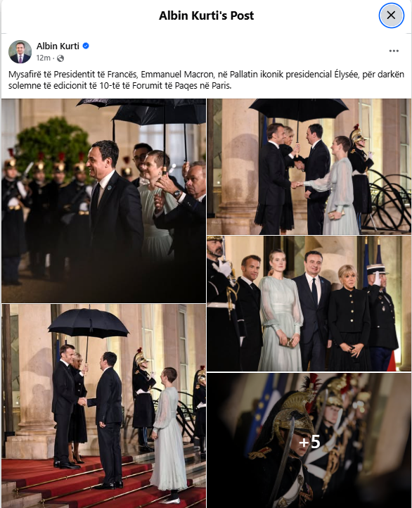 Prime Minister of the Republic of Kosovo, Albin Kurti, was the guest of French President Emmanuel Macron at a state dinner held at the Élysée Palace, as part of the 10th edition of the Paris Peace Forum.