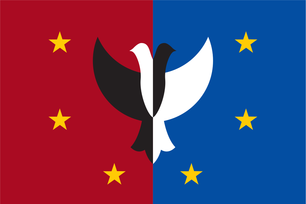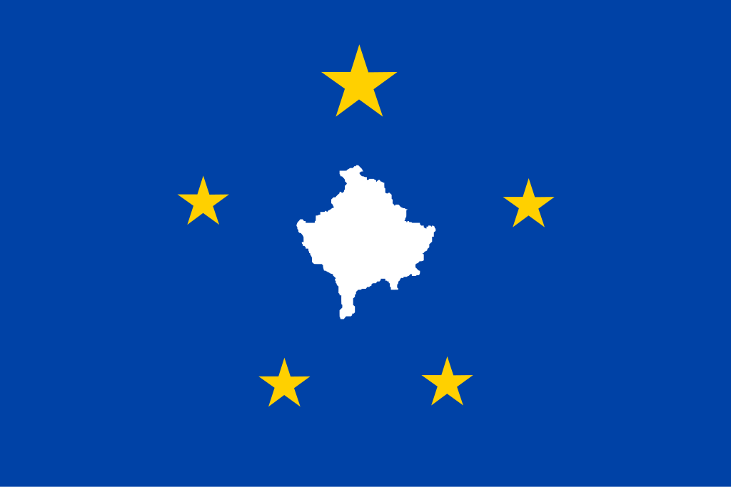 1. A blue field with a white map of Kosovo surrounded by five stars, representing the country’s ethnic groups. The largest star represented ethnic Albanians. This design was proposed by Joseph J. DioGuardi, inspired by the flags of Albania and the USA.