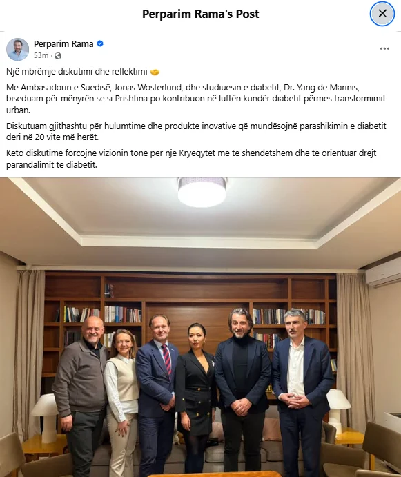 “We also discussed research and innovative products that enable the prediction of diabetes up to 20 years earlier. These discussions strengthen our vision for a healthier Capital, oriented toward diabetes prevention,” Rama wrote on Facebook.