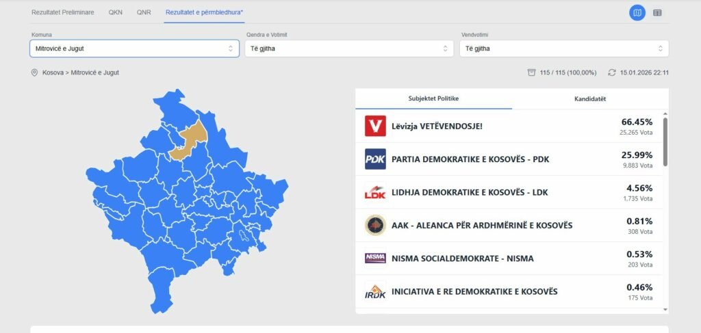 According to the results, Vetëvendosje (VV) leads with 2,276 votes. Following VV is PDK with 995 votes, while LDK secured 205 votes.