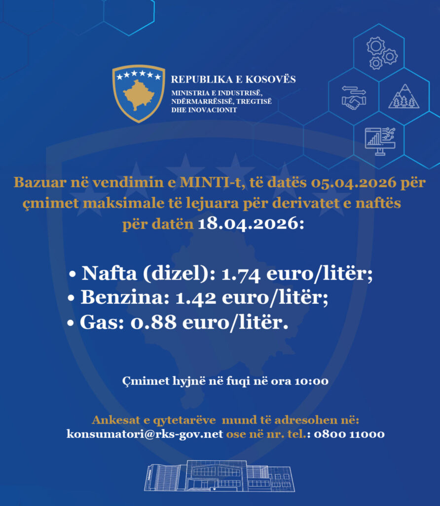 The Ministry of Industry, Entrepreneurship and Trade has published the maximum allowed fuel prices for today in Kosovo.
