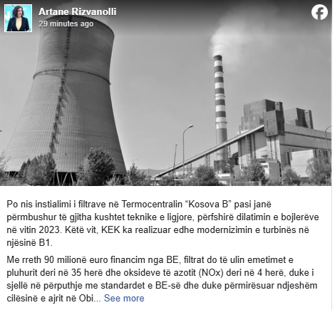 “Filter installation at ‘Kosova B’ is starting now, as all technical and legal requirements have been fulfilled, including the boiler dilation completed in 2023. This year, KEK also completed the modernization of the turbine in unit B1. With around €90 million in EU funding, the filters will reduce dust emissions by up to 35 times and nitrogen oxides (NOx) by up to 4 times, bringing emissions in line with EU standards and significantly improving air quality in Obiliq, Fushë Kosovë, Prishtina, and across Kosovo.