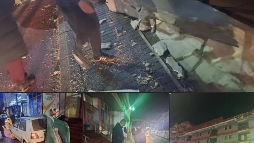 Izja Mjeku, Director of Public Services in Fushë Kosovë, reported that at around 9:00 PM, authorities received a call about the incident near “Mihal Grameno” School, where the building’s facade fell.