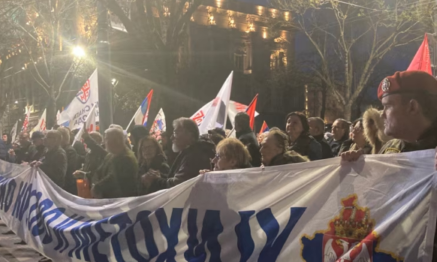 Around 200 protesters waved Serbian flags and banners featuring Vladimir Putin. Nationalist songs were played, while chants such as “We will not give up Kosovo” and “Treason” were heard. Among those present was Serbian MP Branimir Nestorović.