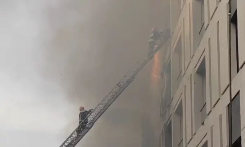 Emergency services responded rapidly to the scene, where the fire had spread across a multi-story apartment block, causing significant damage to the building’s façade. Firefighting teams carried out ongoing evacuation operations to rescue residents who remained inside the structure at the time of the incident.