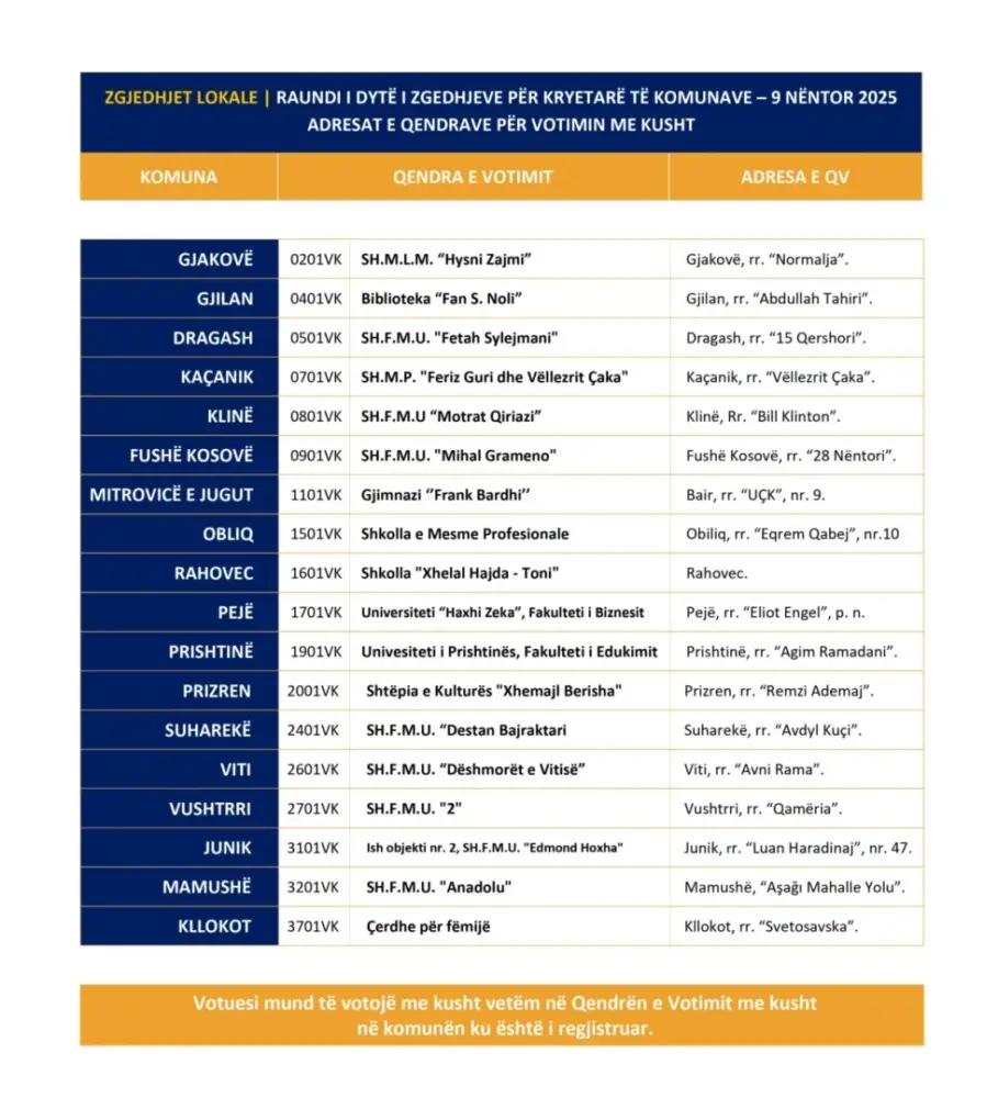 This Sunday, the second round of mayoral elections will take place in 18 municipalities across Kosovo, where no candidate secured a win on October 12.