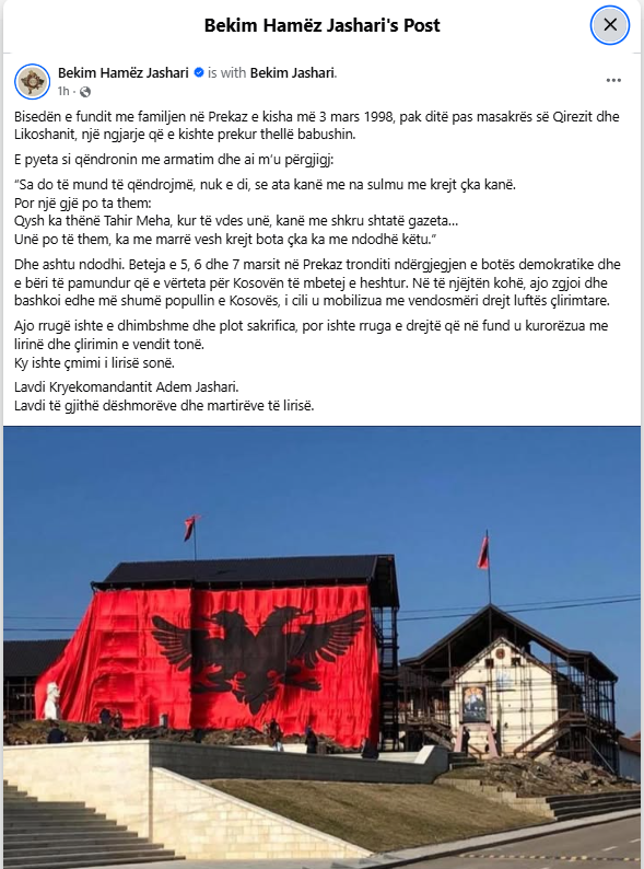 “And that is exactly what happened. The battle of March 5, 6, and 7 in Prekaz shook the conscience of the democratic world and made it impossible for the truth about Kosovo to remain silent. At the same time, it awakened and united the people of Kosovo even more, who mobilized resolutely towards the liberation struggle.”