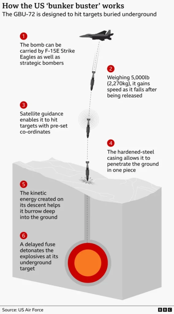 The distribution of weapons across these targets is challenging, which is why different types of bunker-busting munitions are used, including the 5,000 lb GBU-72 Advanced Penetrator, which was used this week, writes the BBC, as reported by Gazeta Express.
