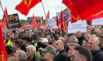 Footage from an unidentified location, released by Ukraine, showed security personnel being welcomed with bouquets of flowers, hugs, and banners reading: “Thank you for staying.”