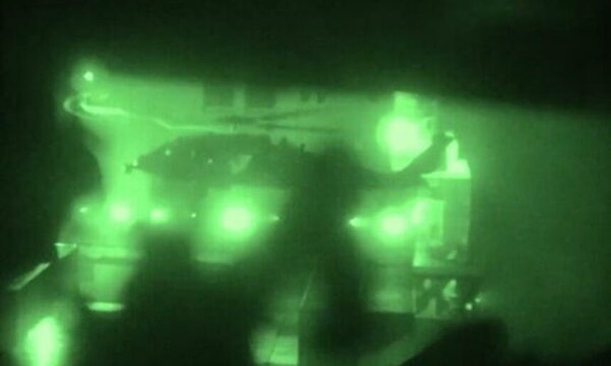 The video shows troops launching from the amphibious assault ship USS Tripoli, descending by ropes from helicopters onto the vessel’s deck, and taking control of the ship. According to the U.S. military, the crew had been warned for hours beforehand.
